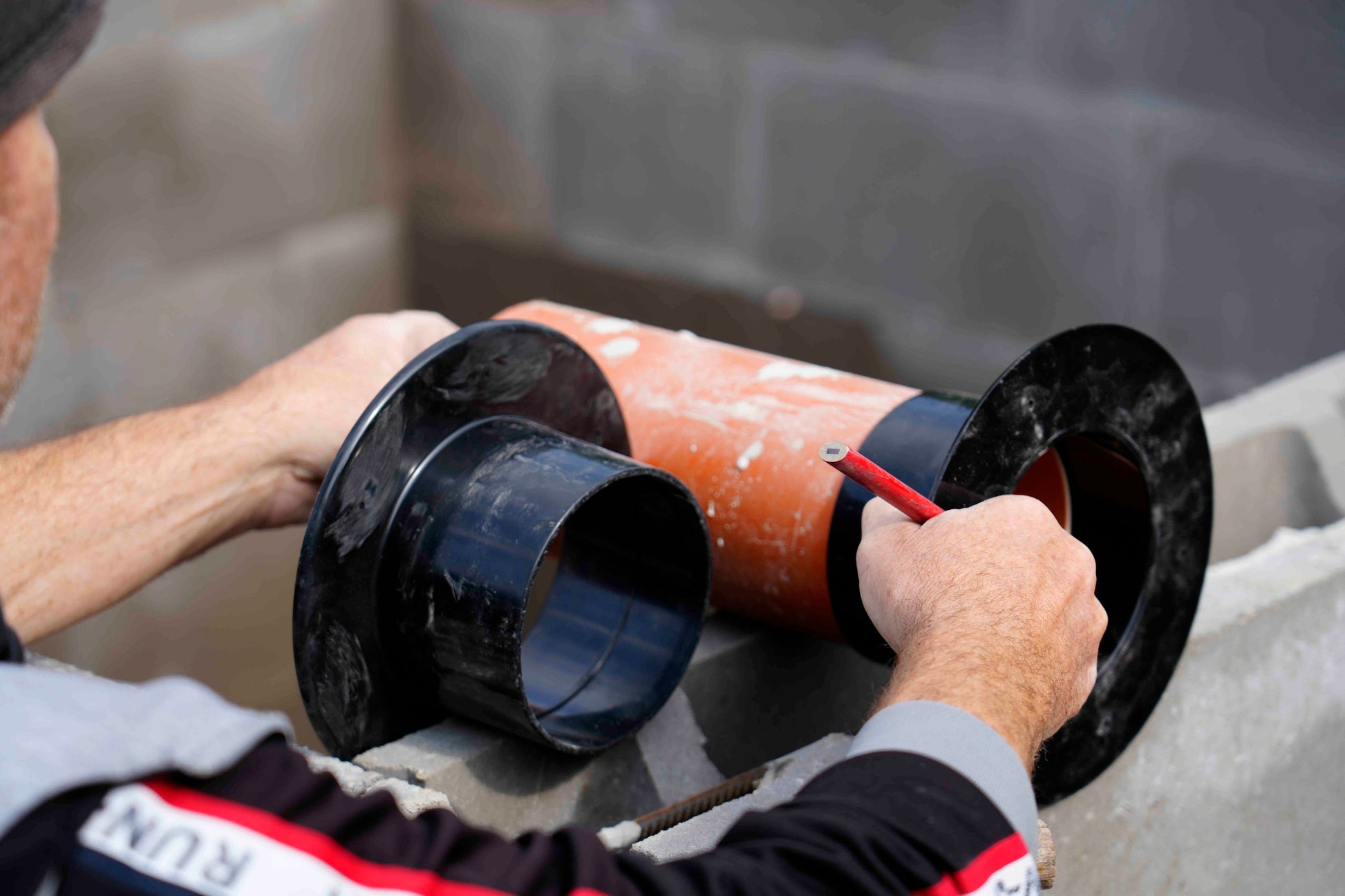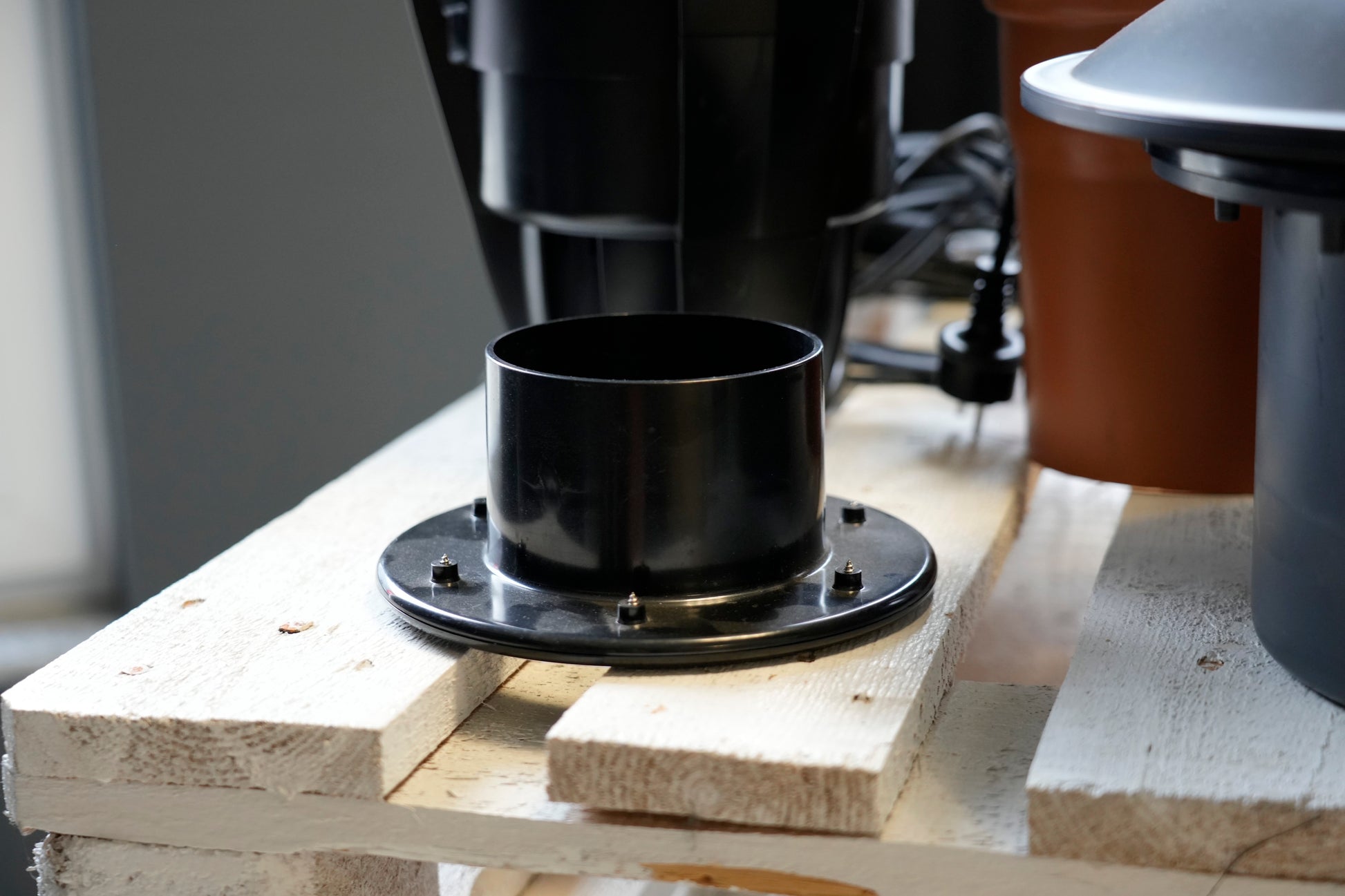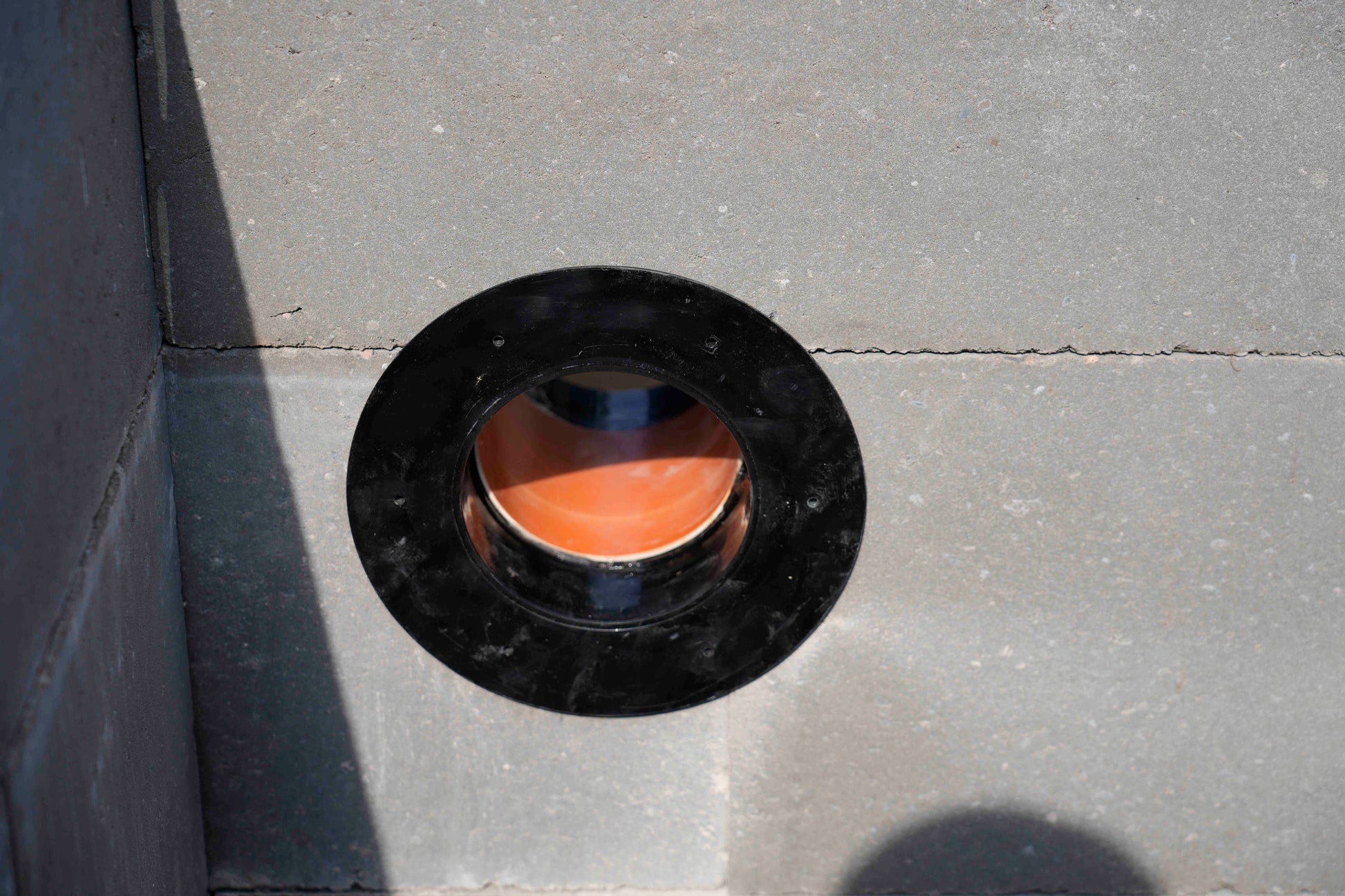 Der Bodenablauf bietet einen 110mm Anschluss in den z.B. KG-Orange oder PVC-Rohr eingeklebt werden kann.