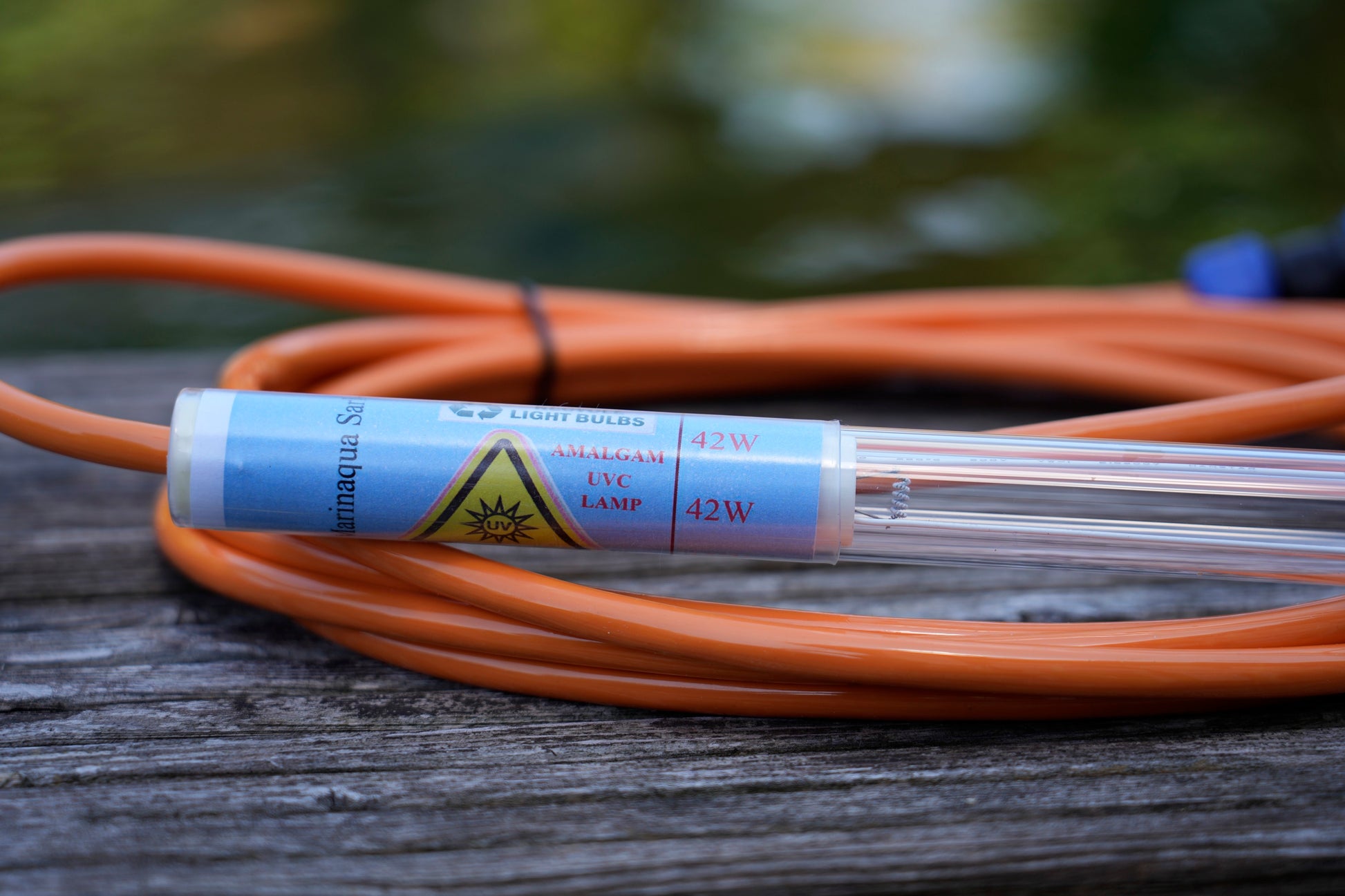 Tauch-UVC-Lampen entsprechen nicht den aktuellen DIN-Normen. Die Installation des Sets muss von einem qualifizierten Fachbetrieb gemäß der DIN EN 60335 ausgeführt werden. Schäden am Gerät oder durch die Inbetriebnahme, die beim Zusammenbau entstehen, gehen vollständig zu Lasten des Kunden oder des beauftragten Elektrofachbetriebs. Im Lieferumfang sind keine Bedienungsanleitung oder Sicherheitszubehör wie Schutzhandschuhe oder Schutzbrille enthalten. UV-C-Strahlen können Haut und Augen schädigen.